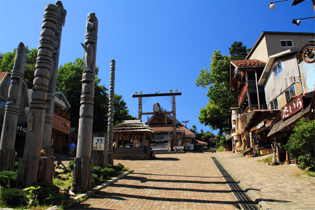 装を展示する「アイヌ生活記念館」のほか、買い物やアイヌ料理が楽しめる民芸品店や飲食