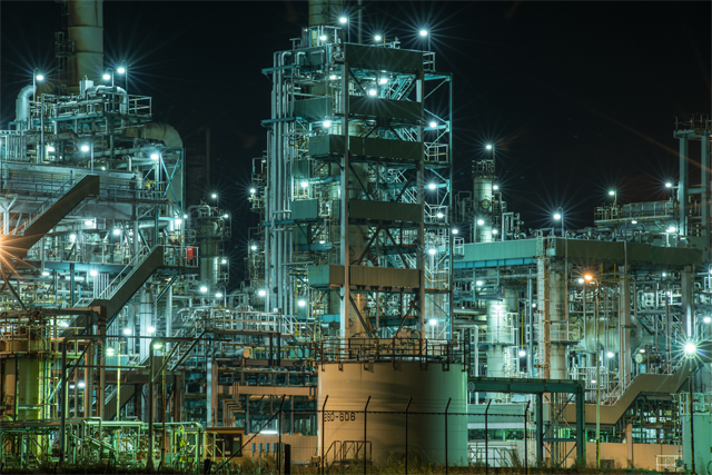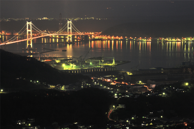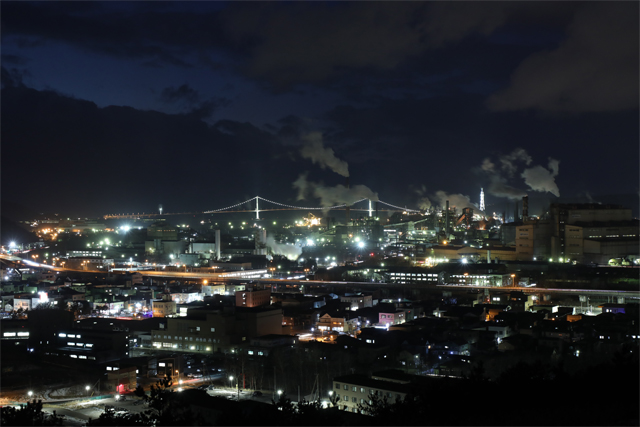 港の周囲に、鉄鋼業をはじめ造船や化学工場等の大きな工場が立地し 「モノづくりのまち」ならではの夜景が見られます。 光輝く保安灯の美しさに加えて、工場群ならではの夜景美が魅力です。