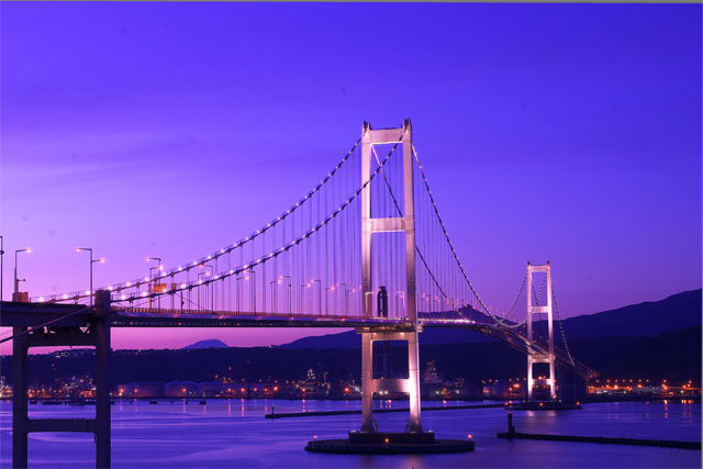 白鳥大橋は、全長1,380mの東日本最大の吊り橋です。 その白鳥大橋に最も近い展望台で、イルミネーションと同じ高さで見ることができます。 イルミネーションは228個電灯からなり、白鳥大橋は日本夜景遺産に登録されています。 近くには道の駅みたら室蘭もございます。