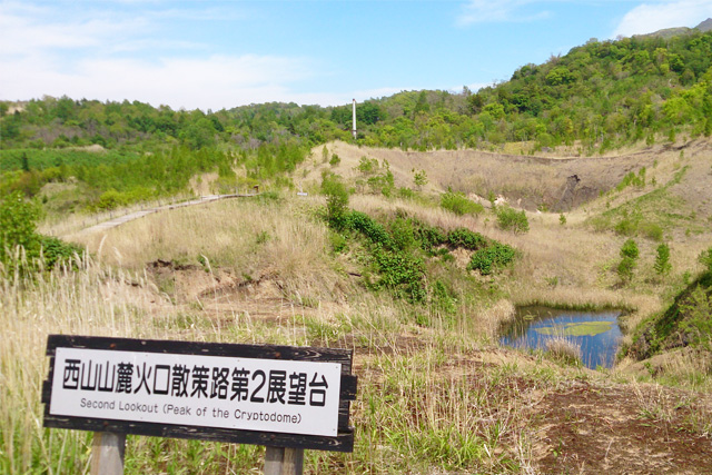有珠山は約1~2万年前に洞爺カルデラの南壁上に生じた成層火山と溶岩ドーム群で、 直径約1.8kmの外輪山を持つ成層火山と、その側の火山及び3個のデイサイト溶岩ドームと 多数の潜在ドームから構成される活火山です。1663年以降わかっているだけで9度噴火し、 近年では2000年に山のふもとで大規模な噴火が発生しました。 ですので、有珠山の山頂付近やふもとでは、多くの噴火によって出来た多くの噴火口を見ることができます。