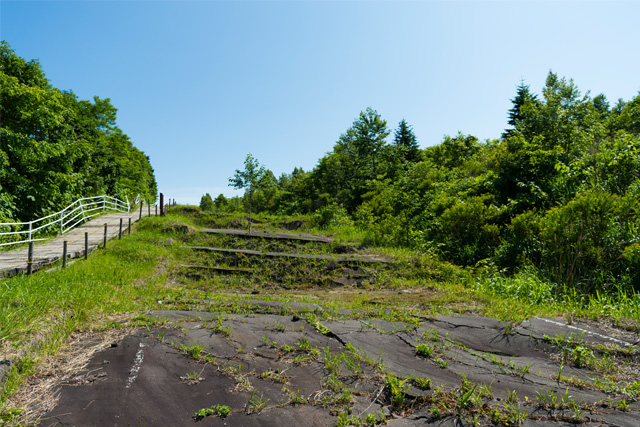 2000年に国道230号を遮るように噴火した跡に、枕木を並べた散策路を歩くルートです。