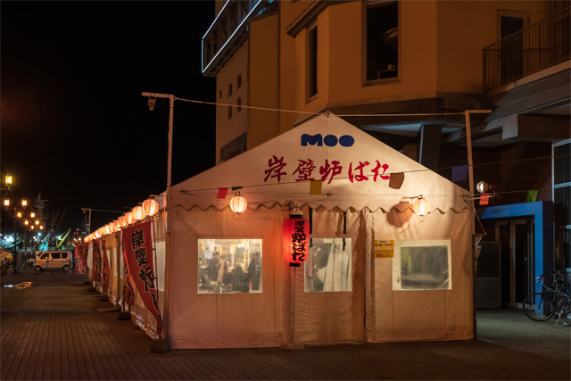 幣舞橋のたもとにある商業施設「釧路フィッシャーマンズワーフMOO」には例年6月~10月ころの期間限定で 屋外で地元の魚介類を豪快に炭火焼で楽しめる「岸壁炉ばた(がんぺきろばた)」 が開かれ多くの観光客でにぎわいます。