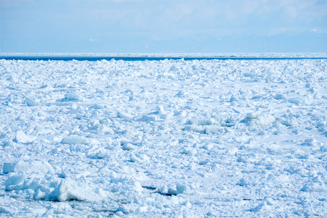 網走から続くオホーツクの海、寒い北海道の冬にだけ訪れる流氷の世界。