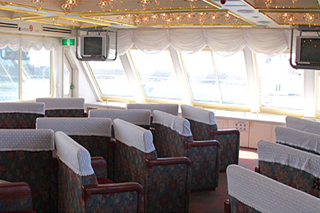 1階・2階の客室と3階展望デッキを完備する大型船のおーろら。 1階客室は自由席となっており、サイドデッキにも繋がっておりますので低い位置からの流氷を間近で感じる事が出来ます。