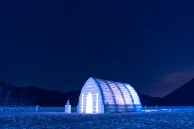 なんと氷の建物に宿泊もできます! 極寒地用の寝袋を使用して 、 雪と氷のベッドの上で眠る体験が可能です。寝袋の中は意外にも暖かくてそしてよく眠ることができるそうです。 静かな湖の上で湖の氷がきしむ音や、外の明るさの変化を体感しながら特別な一夜を過ごせます。