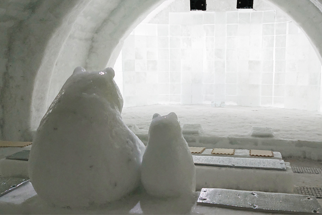 雪と氷で造られた建物が幻想的な雰囲気を醸し出し、さらに世界で唯一の氷上露天風呂もあります!