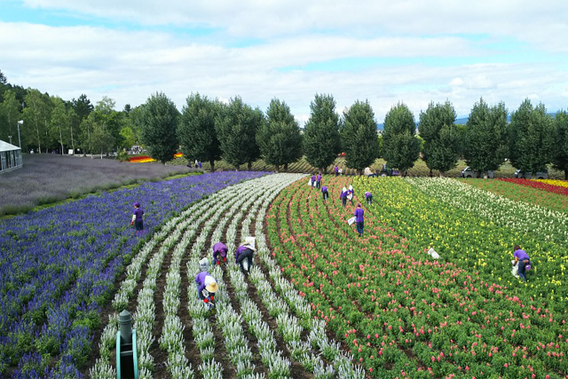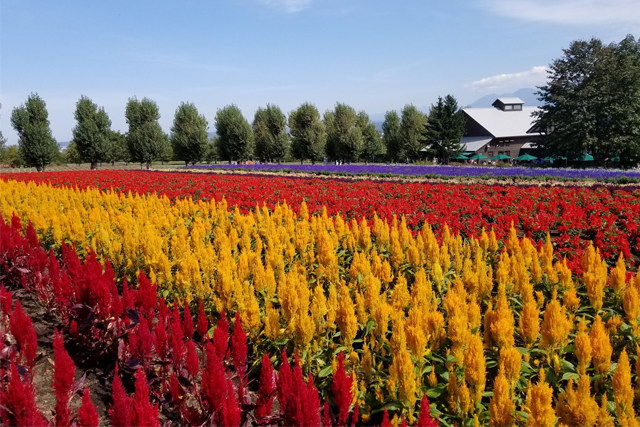 ファーム富田では、ラベンダーの他に色とりどりの季節のお花が咲き、紫色の畑に彩りを与えてくれます。