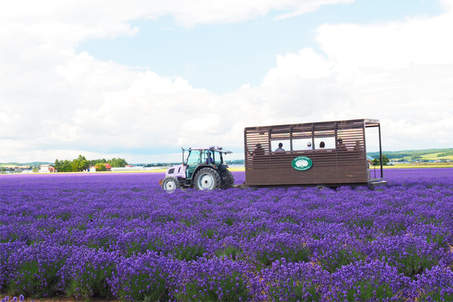 また、十勝岳連峰に向かって東に4キロほど行ったところに、 ラベンダーイースト(7月のみ営業)があり、こちらにもたくさんのラベンダーが栽培されています。 ラベンダーイーストが位置している上富良野町東中地区は富良野地域におけるラベンダー栽培発祥の地でもあります。 園内ではトラクターが牽引するラベンダーバスが運行しており、15-20分ほどかけてのんびりとラベンダー畑をめぐります。 ファーム富田の本園と比べて、こちらの方が時間帯によっては人混みが無く、ゆったりと過ごせる穴場スポットでもあります。
