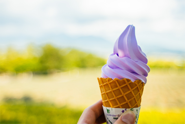 人気スイーツは何といってもラベンダーソフト! 北海道の濃厚ミルクとラベンダー風味の綺麗な紫色のソフトクリームは後味さっぱりの人気商品です。 ソフトクリームとグラデーションのお花畑の写真はSNS映え間違いなしです。 そのほか、大人気のメロン果汁入りクリームが入った焼きたてふらのメロンパン、ラベンダーはちみつプリン、 ラベンダーカルピスゼリーやラベンダーティー・コーヒーなどもありますのでぜひ、 綺麗なお花をながめながらティータイムにしてみてはいかがでしょうか。