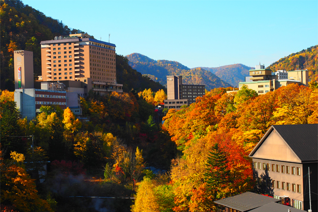 札幌市街から1時間弱と気軽に温泉を楽しむことができる札幌の奥座敷の定山渓温泉は、 年間約240万人が訪れる道内外問わず地名度もあり人気のある温泉地です。 豊平川渓谷沿いに立つホテルは、初夏は新緑、秋は紅葉が楽しむこともできます。