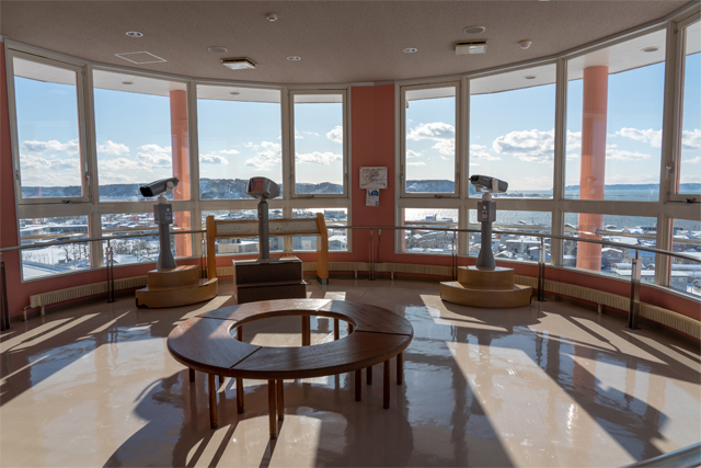 1階には小さい水族館コーナーがあり周辺に生息する貝類、海水魚、淡水魚が観察できるほか、 3・4階には高台から厚岸湖や厚岸の街並みを一望できる展望室があり、 食べるだけではなく、見て楽しむこともできます。