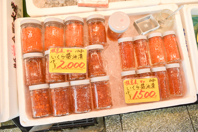 本場北海道で獲れ、加工されたいくらはまさに赤く輝く宝石のようです。 プリッとした食感で白いご飯にたっぷりかけて食べるいくら丼は贅沢そのもの。 瓶詰などもあるので、かさばらないお土産としてもオススメです。